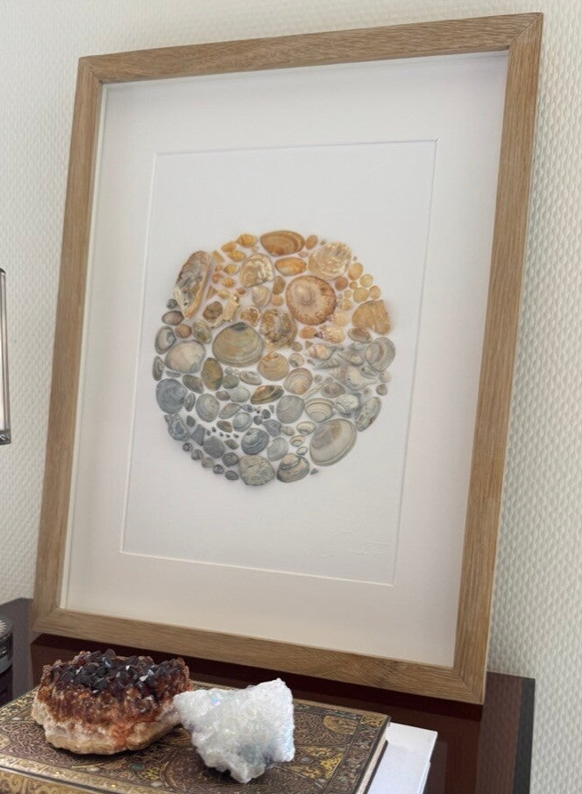 Elk kunstwerk van DaliTo vertelt een eigen verhaal. Iedere keer als je kijkt naar een kunstwerk zal iets nieuws je opvallen. Van wenteltrapje tot mossel, of van een stukje koraal tot een sint Jacobsschelp. Allemaal uniek in hun vorm, kleur en patroon. Zelfs de allerkleinste schelpjes zijn bijzonder mooi en doen niet onder voor grote schelpen. Ontdek de harmonie van kleuren en patronen die samensmelten tot een tijdloos geheel. Als je een liefhebber bent van de zee en het strand, zal DaliTo je hart raken!